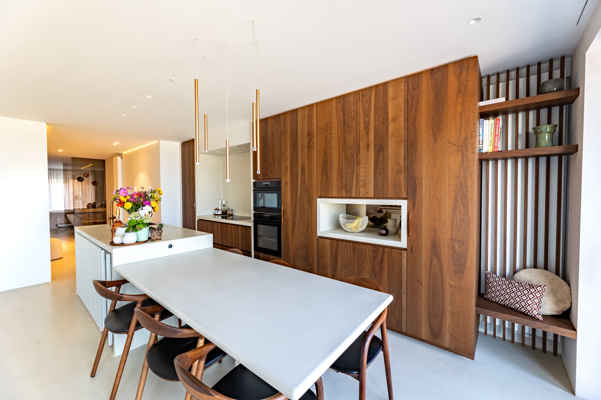 La chaleur du bois associée à des lignes contemporaines. Voici une cuisine bien dans l'air du temps.